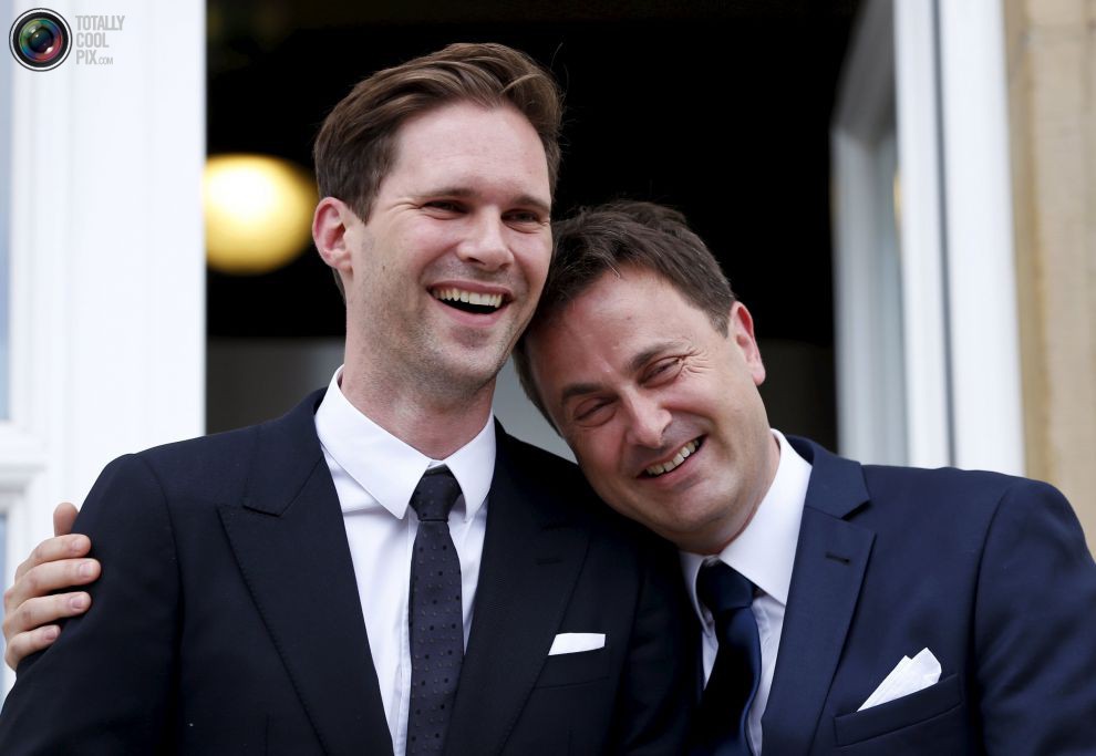 | Премьер-министр Люксембурга Ксавье Беттель и его муж, архитектор Готье Дестне, после церемонии бракосочетания в Люксембурге.